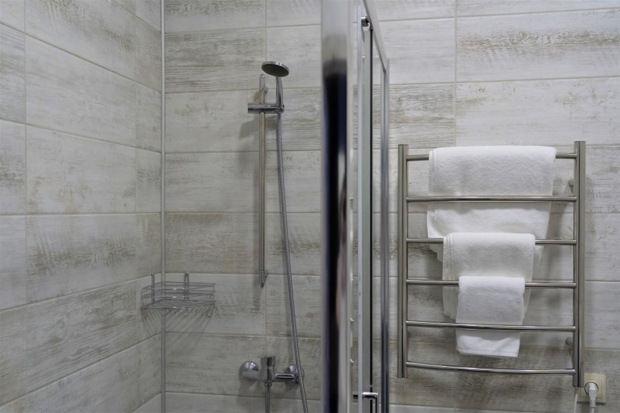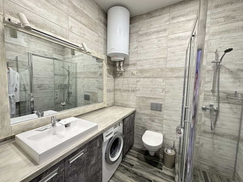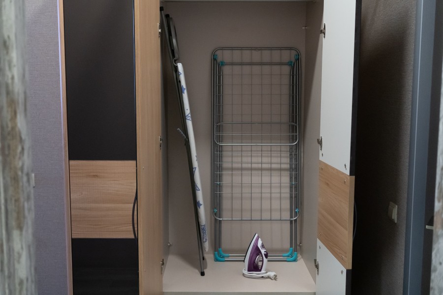 Двуспальная кровать и диван - однокомнатный номер 29,7 кв.м. - личный сан.узел (душевая кабина, раковина, туалет, фен, полотенца для лица и тела, халаты, гигиенические принадлежности, стиральная машина, гладильная доска, утюг, сушилка) - телевизор, чайник, чашки - от 1 до 4х человек - возможно пользование общей кухонной зоной, где есть вся необходимая бытовая техника и посуда